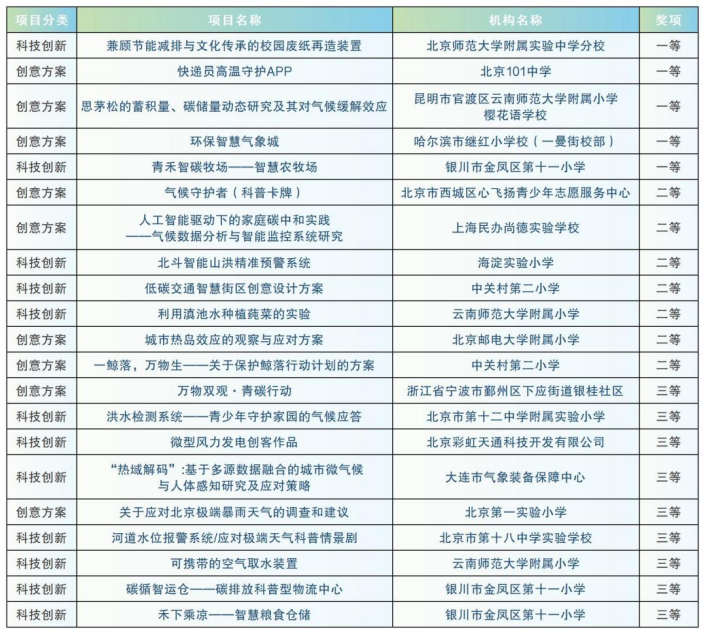 “2025年中国青少年应对气候变化倡导活动”自启动以来,得到全国多所中小学校和专业机构的积极响应和广泛参与。经资格审查和专家组评审,分别评选出一、二、三等奖共计31名,拟获奖名单见下图。